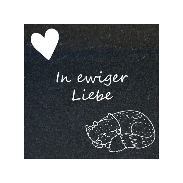 Setzen Sie ein liebevolles Zeichen der Erinnerung mit unserem edlen Granitstein „In ewiger Liebe“. Der hochwertige Naturstein im Format 20x20cm und einer feinen Stärke von 1cm überzeugt durch seine schlichte Eleganz. Zart verziert mit einer ruhig schlafenden Katze und dem Schriftzug „In ewiger Liebe“ wird er zu einem stillen Symbol für Dankbarkeit, Nähe und unvergessene Momente. Ein besonderer Erinnerungsstein für all jene Orte, an denen die Erinnerung an treue Gefährten lebendig bleibt.