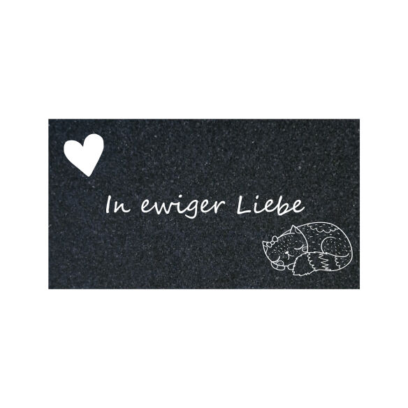 Setzen Sie ein liebevolles Zeichen der Erinnerung mit unserem edlen Granitstein „Katze“. Der hochwertige Naturstein im Format 30x20cm und einer feinen Stärke von 1 cm überzeugt durch seine schlichte Eleganz. Zart verziert mit einer ruhig schlafenden Katze und dem Schriftzug „In ewiger Liebe“ wird er zu einem stillen Symbol für Dankbarkeit, Nähe und unvergessene Momente. Ein besonderer Erinnerungsstein für all jene Orte, an denen die Erinnerung an treue Gefährten lebendig bleibt.